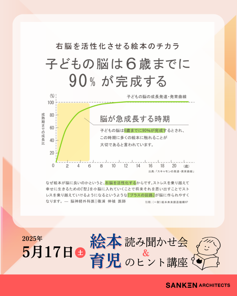 読み聞かせの後の「知育に役立つ住環境講座」では、育児におすすめの間取りなど育児と住宅に関わる目から鱗の情報をお届けします。