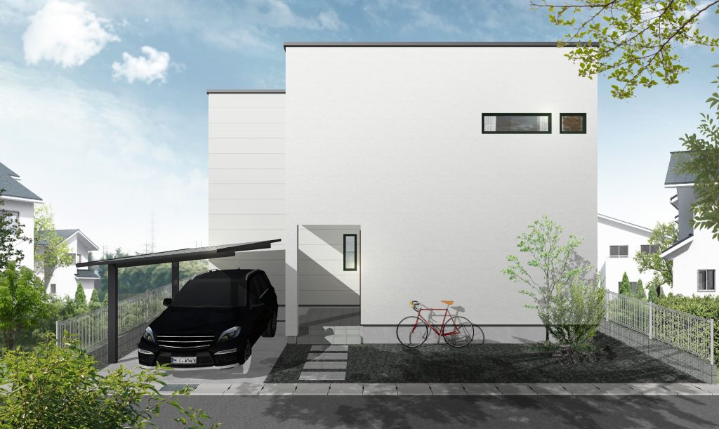 黒、白、グレーで統一された、木目を消したシンプルモダンハウス。