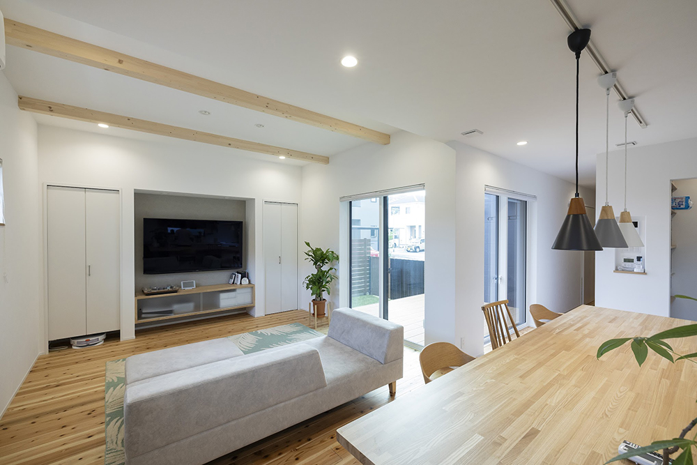 地元に新たにできた分譲地を気に入り、「ここで家を建てたい」と思いました。敷地を最大限に活かしてくれる会社を探していたところ、知人からいい会社があるよ!と三建を勧められました。
