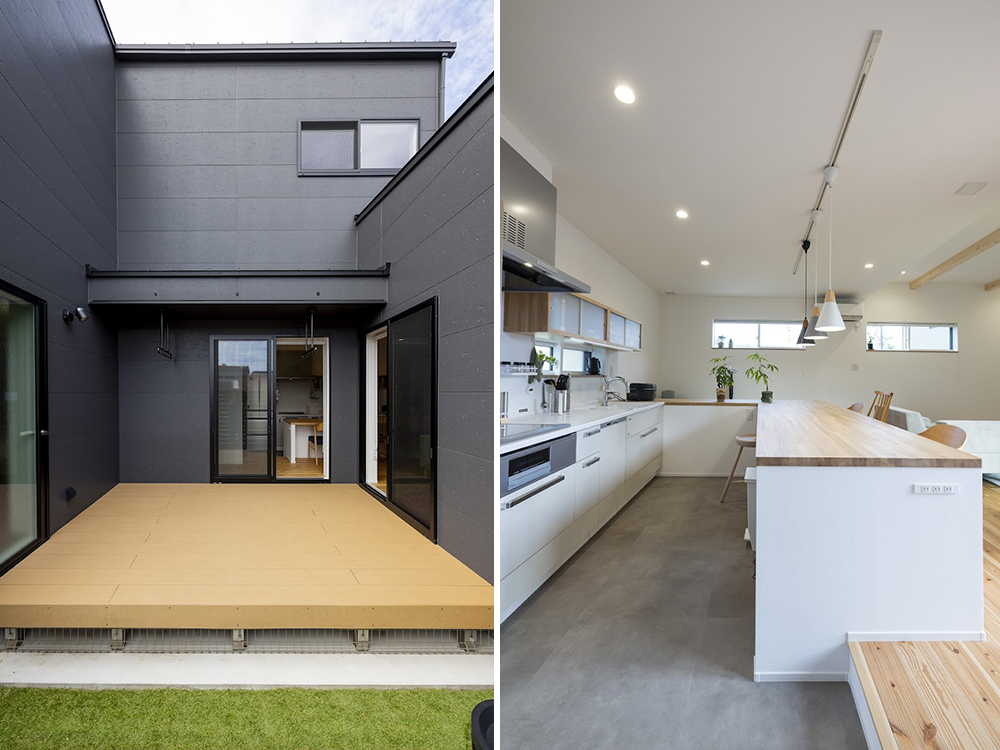 また、カウンターの背面には中庭を配置し、窓を開け放つと開放感が生まれるように設計して頂きました。キッチンから中庭までの距離が近いため、デッキでBBQをする際の準備や片付けがとっても楽です。