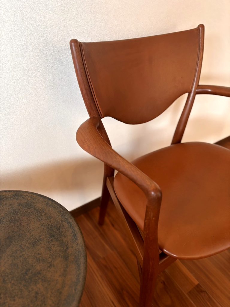 「彫刻のような椅子」というフィン・ユール自身の言葉が、そのまま体現されたような一脚です。