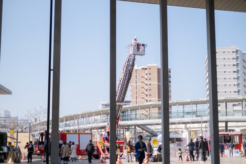 会場の中でも、特に家族連れの来場者で賑わいを見せたのが、はしご車・救急車・移動美容室などの「はたらくクルマ」展示エリアです。普段なかなか間近で見ることのできない車両を前に、子どもたちは目を輝かせ、大人も思わず足を止める光景が広がりました。はしご車の前では、「こんなに大きいとは思わなかった」「どうやって動くの?」といった声が飛び交いました。