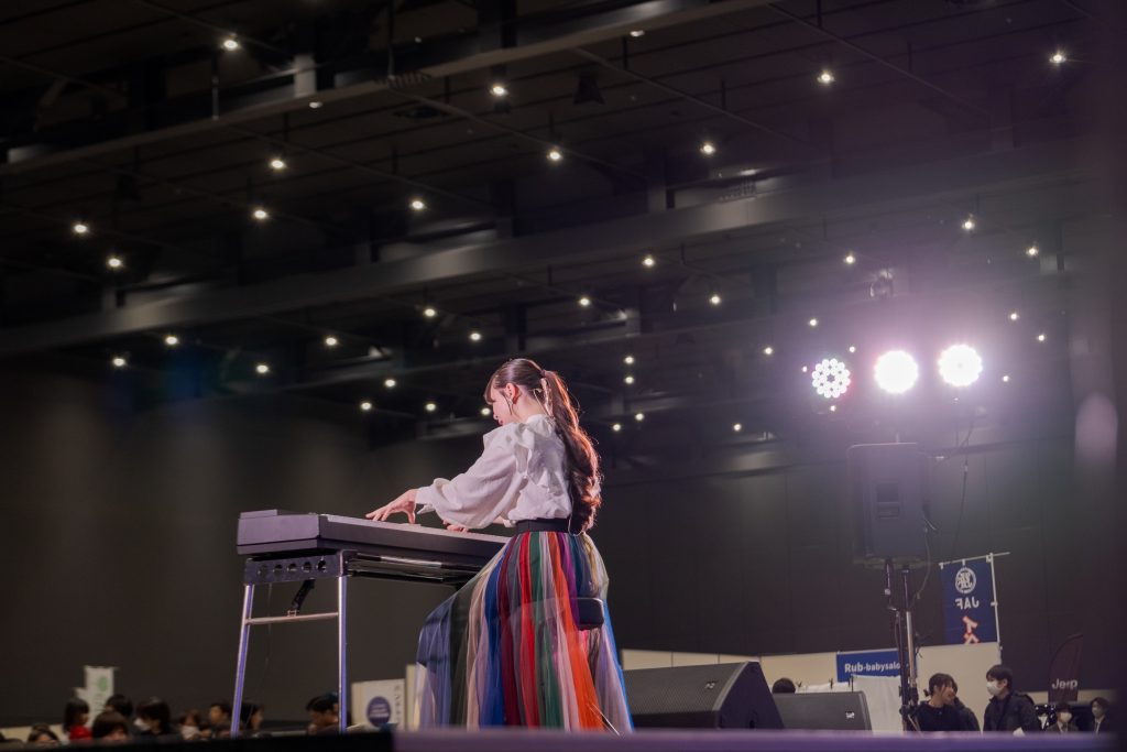 SANKENステージでは、朝から夕方まで多彩なプログラムが展開され、会場の熱気を一層高めました。オープニングを飾ったのは、迫力ある和太鼓「朔-saku-」のパフォーマンス。力強い音色が会場に響き渡り、イベントの幕開けにふさわしい高揚感を演出しました。続くチア・ダンスパフォーマンスでは、元気いっぱいの演技に、会場から大きな拍手と歓声が送られました。午後のステージでは、SNS総再生数5億回を超える人気ピアノタレント、まなまるさんが登場。ピアノ演奏だけでなく、歌やモノマネ、軽快なトークを交えたステージで、子どもから大人まで会場全体が一体となって楽しむ時間となりました。