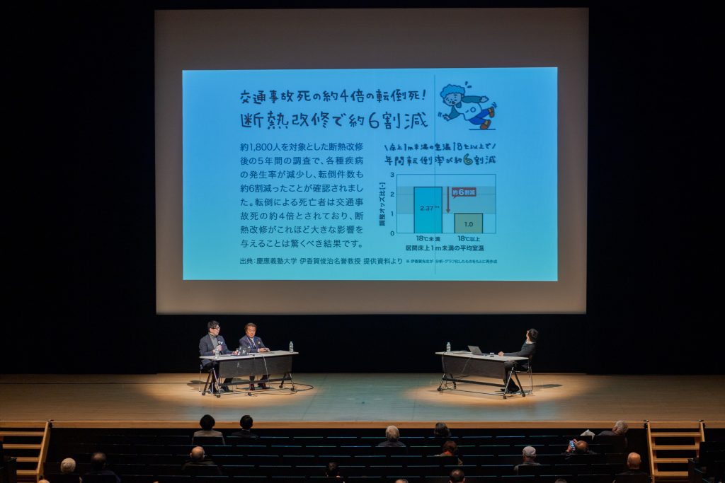 SANKENステージでは、参遊亭英遊氏と三建副社長・中澤 博明氏、(一社)日本人の健康をつくる住宅断熱リフォーム推進協議会 事務局長・小松昭氏による特別トークセッションも実施。住まい・資産・相続を切り離さず、「暮らしをどう次世代につないでいくか」をテーマに語り合い、多くの来場者が熱心に耳を傾けていました。