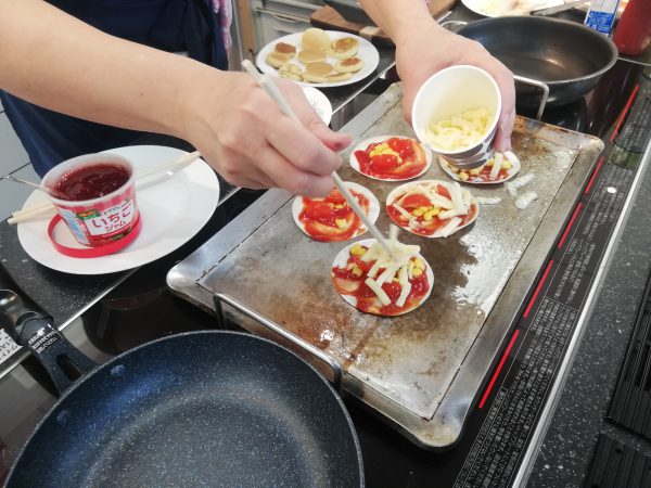 今回はホットケーキMIXで作るミニどら焼きと餃子の皮で作るミニピザです