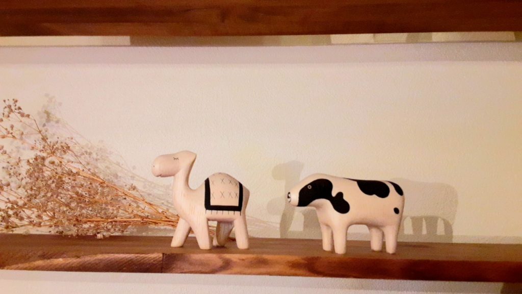三建のお家は木造なので木で作られている動物たちがとてもあっています。