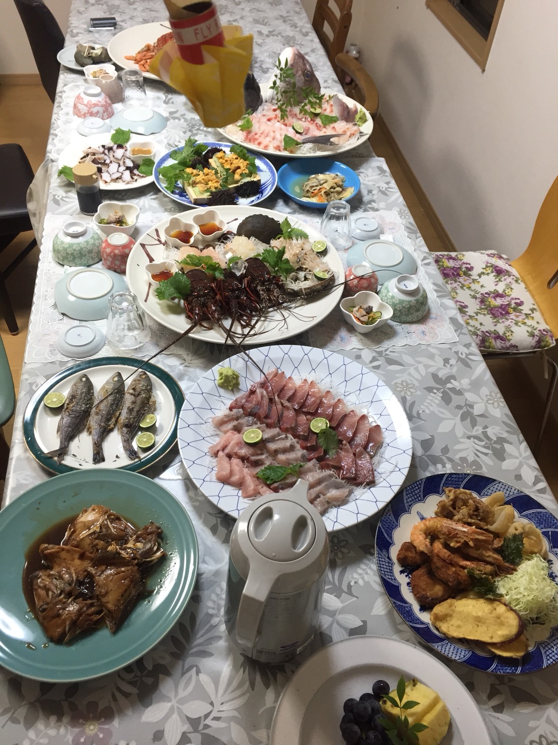 ギリギリ雨にやられずにたどり着いて待っていたのは、とても豪華な海鮮料理の数々。