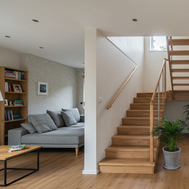 リビング中央に階段を設け、上下階のつながりを大切に。家族が自然と顔を合わせる、あたたかい空間設計です。