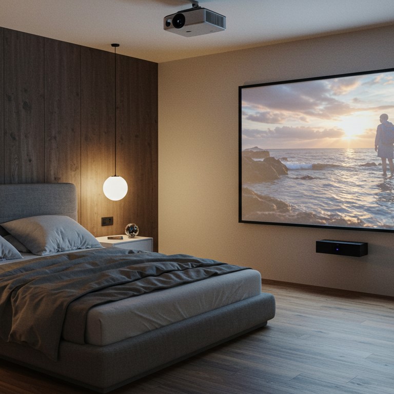 主寝室にはプロジェクターを設置。ベッドに横たわりながら映画鑑賞が楽しめる、贅沢なプライベート空間を実現しました。