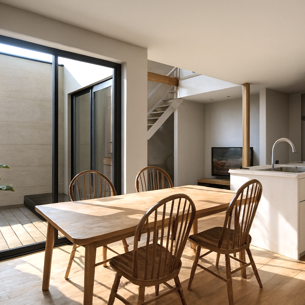 中庭や吹き抜けのあるダウンリビングが開放感を演出。
