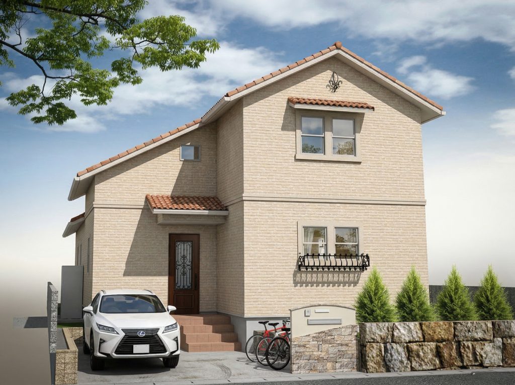 青空に映える赤い洋瓦と、こだわりを凝縮したシルエット。まるで海外の住宅街を訪れたような、旅情を感じさせる佇まいが家族やゲストを温かく迎えます。