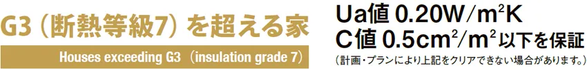 G3(断熱等級7)を超える家 Ua値0.20W/m2K C値0.5cm2/m2以下を保証
