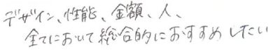デザイン、性能、金額、人、全てにおいて総合的におすすめしたい