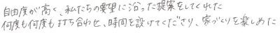 ・何度も何度も打ち合わせ、時間を設けてくださり、家づくりを楽しめた