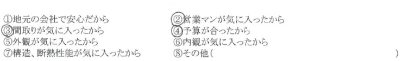 ・営業マンが気に入ったから ・間取りが気に入ったから ・予算が合ったから