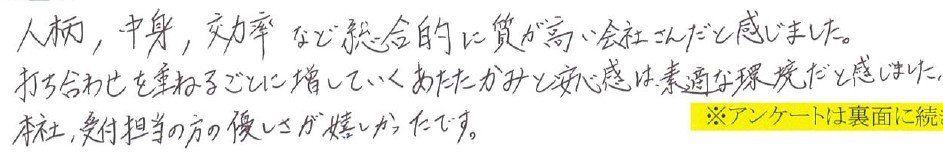 人柄、中身、効率など総合的に質が高い会社さんだと感じました。