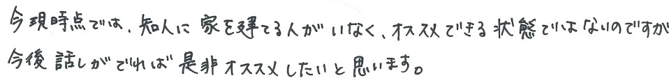 今時点では、知人に家を建てる人がいなく、オススメできる状態ではないのですが