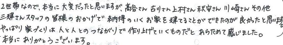 やっぱり家づくりは人と人とのつながりで作り上げていくものだとあらためて感じました。
