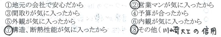 たくさんある住宅会社の中から、三建に決めた理由をお聞かせ下さい。