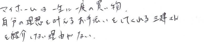 自分の理想を叶えるお手伝いをしてくれる三建さんを紹介しない理由がない。