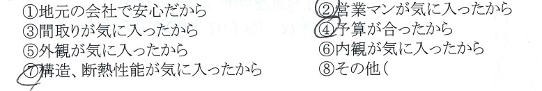・営業マンが気に入ったから・予算が合ったから・構造、断熱性能が気に入ったから