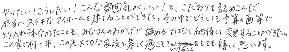 この家で何十年、この先大切な家族と楽しく過ごしていけることをとても嬉しく思います。