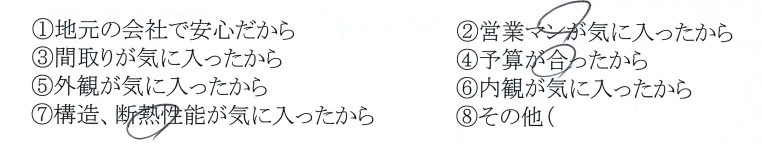 ・営業マンが気に入ったから・予算が合ったから・構造、断熱性能が気に入ったから