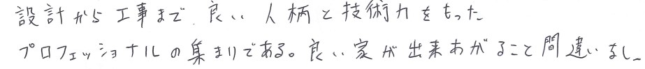 設計から工事まで、良い人柄と技術力をもったプロフェッショナルの集まりである。