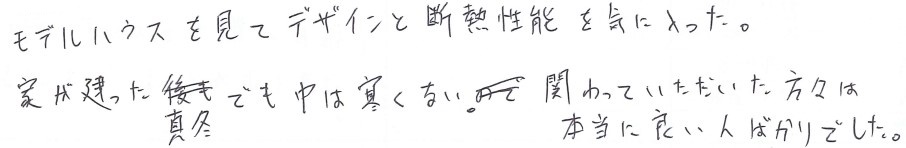 モデルハウスを見てデザインと断熱性能を気に入った。