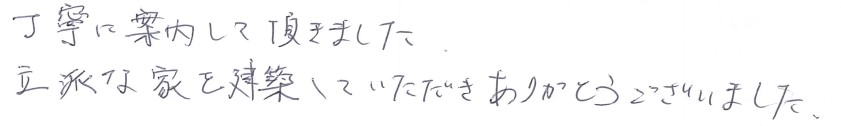 丁寧に案内して頂きました。立派な家を建築していただきありがとうございました。