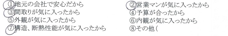 ・地元の会社で安心だから・営業マンが気に入ったから・間取りが気に入ったから・構造、断熱性能が気に入ったから