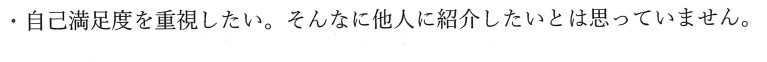 ・自己満足度を重視したい。そんなに他人に紹介したいとは思っていません。