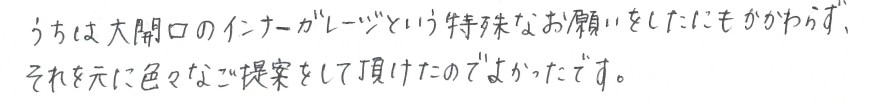 うちは大開口のインナーガレージという特殊なお願いをしたにもかかわらず、