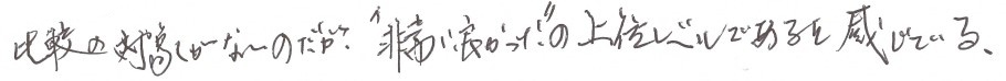 比較の対象がないのだが、”非常に良かった”の上位レベルであると感じている