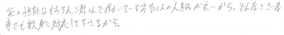 家の性能はもちろん三建さんで働いている方皆さんの人柄が良いから。どんなささいな事でも親身に対応して下さるから。