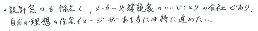 ・設計窓口も幅広く、メーカーや建築家のいいとこどりの会社であり、自分の理想の住宅イメージがある方には特に進めたい。