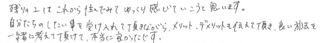 自分たちのしたい事を受け入れて頂きながら、メリット・デメリットも伝えて頂き、良い方法を一緒に考えて頂けて、本当に良かったです。