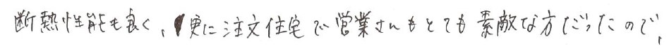 断熱性能も良く、更に注文住宅で営業さんもとても素敵な方だったので。