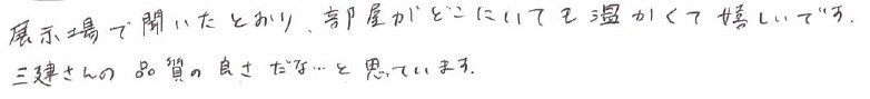 展示場で聞いたとおり、部屋がどこにいても温かくて嬉しいです。