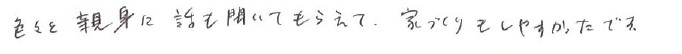 色々と親身に話も聞いてもらえて、家づくりもしやすかったです。