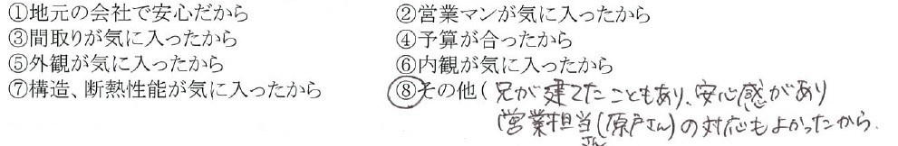 ・その他(兄が建てたこともあり、安心感があり営業担当さん(原戸さん)の対応もよかったから)