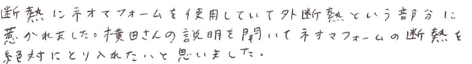 横田さんの説明を聞いてネオマフォームの断熱を絶対にとり入れたいと思いました。