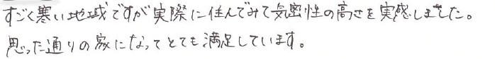 すごく寒い地域ですが実際に住んでみて気密性の高さを実感しました。