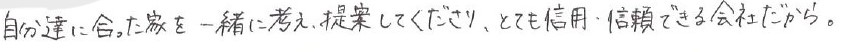 自分達に合った家を一緒に考え、提案してくださり、とても信用・信頼できる会社だから。
