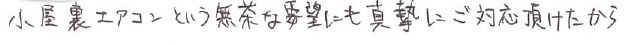 小屋裏エアコンという無茶な要望にも真摯にご対応頂けたから