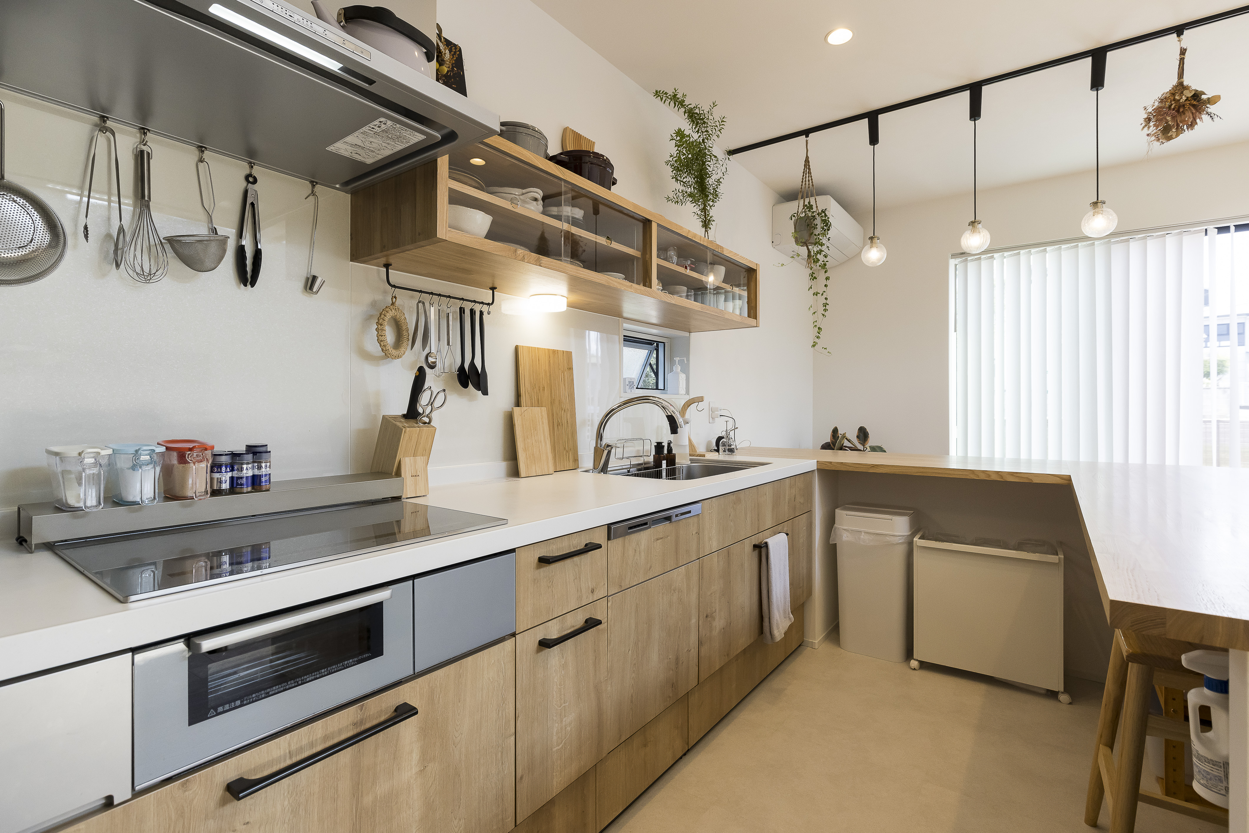 キッチンの高さやキャビネットの大きさ、シンク・コンロの幅等をミリ単位で調整できたり、細かくサイズ指定ができ家族全員が納得いく造作キッチンに仕上げられます。