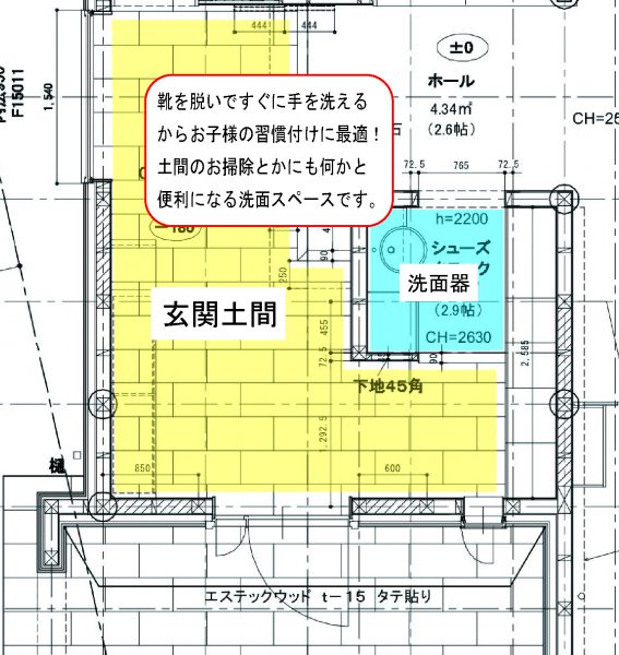 靴を脱いだらすぐにそこで手を洗ってお家の中へ上がることができます。