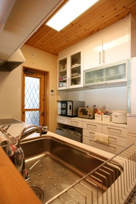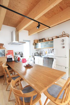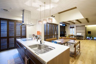 家の中で家族とのコミュニケーションが取りやすいことから、現在では戸建てのキッチンの間取りだけでなく、新築のマンションも対面式が主流になり、吊戸棚をなくしてキッチンが家の中心になっている間取りも多く見かけます。