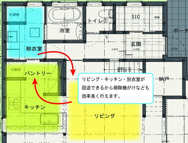 部屋と部屋を回遊できるようにして全ての作業効率をアップ!