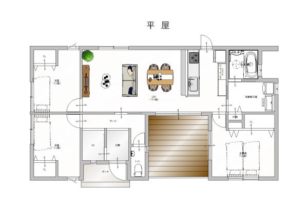 子育て中には子供を見守りやすい、高齢になってからは、バリアフリーにしやすい家でもあります。